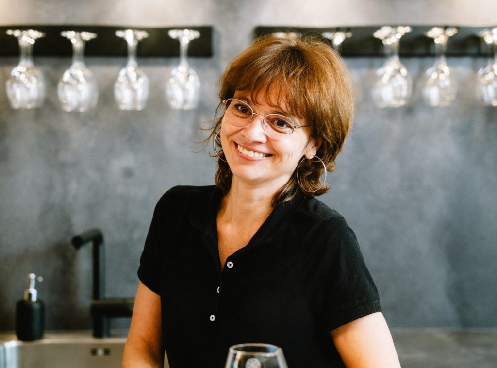 Die Frau vom Chef mit ihrem anpackenden Wesen. Leitspruch: „Ich mach das schon…“ Stets online aktiv für das Weingut..